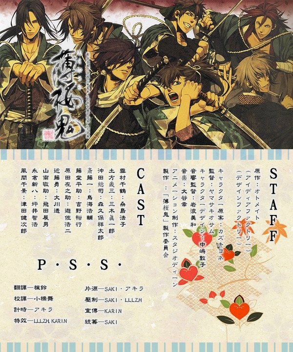 漫游连载组PSS译制的四月新番之一。《薄樱鬼 〜新选组奇谭〜》自2010年4月开始播放动画。