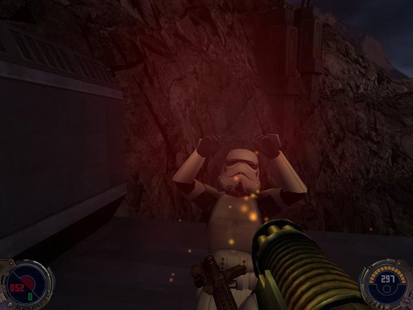 星球大战之杰迪武士2《杰迪武士2》是LucasArts准备在2002年推出的最受玩家期待的游戏之一。虽然游戏被称作《杰迪武士2》,但它却是该系列游戏中的第三款作品(先前的两款游戏分别是《暗黑力量》(Dark Forces)和《星球大战之杰迪武士:暗黑力量2》(Star Wars Jedi Knight: Dark Forces II))。相对于前两款作品,游戏的制作公司Raven Software(曾经因为制作过《命运战士》(Soldier of Fortune)和《异教徒》(Heretic)而闻名于业界)在保持原作风格的基础上,将《杰迪武士2》的画面和游戏性都有所提高,使得该系列游戏到达了新的高度。