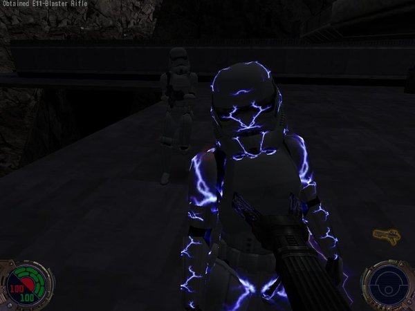 注意:不要直接运行桌面上的图标,进入到游戏目录,进入GameData,运行jk2sp.exe进入游戏,jk2mp.exe应该是联机游戏。