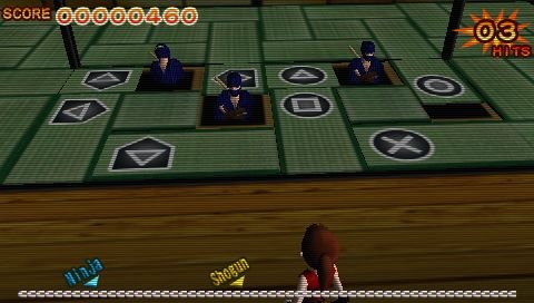 根据屏幕上的按键提示来按键,注意使用摇杆控制剪头对准音符轨迹,另外就是要注意按对键哦。游戏时,画面会随着音乐的行进抖动,非常的有感觉。