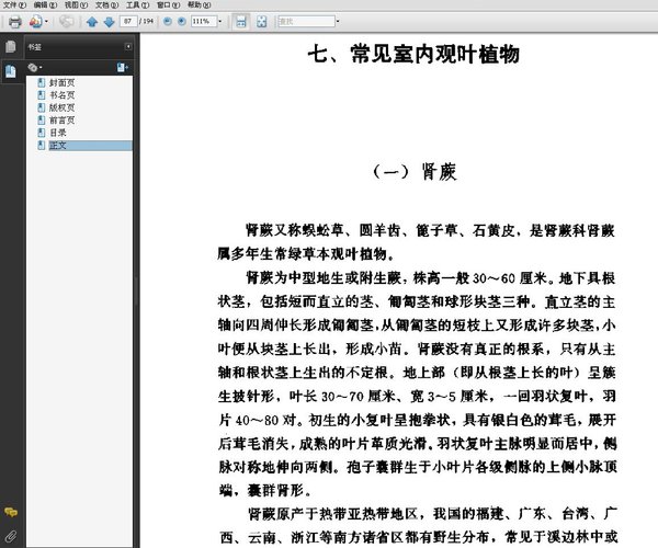 : 一、室内观叶植物的基本习性 二、室内观叶植物的繁殖 三、室内观叶植物盆栽基质与栽培器具 四、室内观叶植物的培植与管理 五、室内观叶植物的主要病虫害及其防治 六、室内观叶植物的绿化装饰 七、常见室内观叶植物