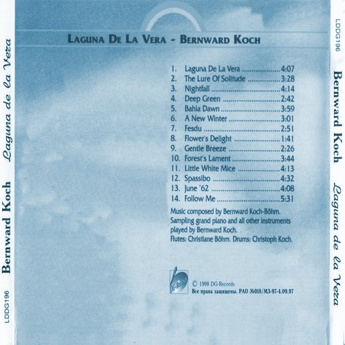 德国 New age 钢琴音乐家 Bernward Koch 发行于1993年的《Laguna de la Vera 温泉物语》,一如上张专辑《Flowing 流动》,把 New Age 的电子合成编排,加入爵士钢琴和传统的笛声,产生非常入耳的旋律,并带出一丝丝温暖的怀旧感觉。宛如封面沙滩上漂亮的蓝玫瑰,出尘和浪漫兼有。1993年Billboard New Age榜拿到第18名的好成绩。不但获得极具影响力的电台The Power全力推荐,在欧美各地广受欢迎外,更以专辑主打曲《Laguna de la Vera》蝉连美国Billboard告示牌新世纪音乐类榜首数月之久。另外第四轨的《Deep Green》也非常耐听。