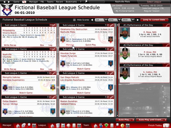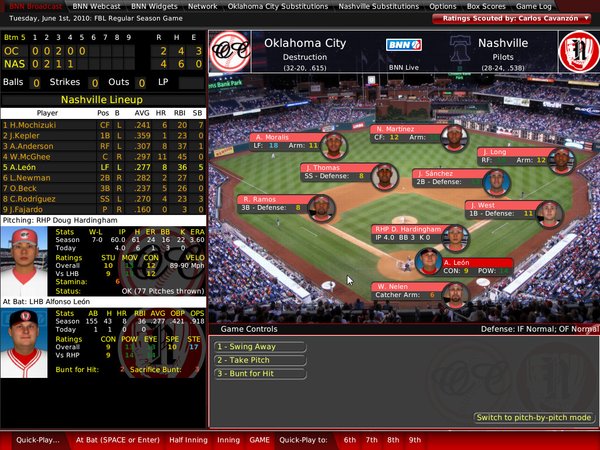Manage individual games on a pitch-by-pitch basis