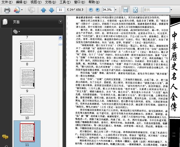 : 一、中华历史十大帝王全传——龙行天下 1、九龙腾霄——秦始皇 2、从谏如流——汉高祖刘邦 3、黄金时代——唐太宗李世民 4、雄才伟略——宋太祖赵匡胤 5、一代天骄——成吉思汗 6、冷酷帝君——朱元璋 7、戒马创业——清太祖努尔哈赤 8、千古一帝——清圣祖玄烨 9、乾纲独断——清世宗胤祯 10、天朝威福——清高宗弘历 二、中华历史十大后妃全传——凤舞九天 1、一笑千金——褒姒 2、出水芙蓉——西施 3、绝代女枭——吕雉 4、昭阳艳史——赵飞燕 5、风流女皇——武则天 6、太真仙子——李贵妃 7、铁马红颜——萧燕燕 8、稀世明珠——花蕊夫人 9、独步古今——孝庄 10、垂帘听政——慈禧 三、中华历史十大名妓全传——风华绝代 1、花中魁首——绿珠 2、千古绝色——苏小小 3、薄命怜她甘作妓——薛涛 4、桃花几度吹红雨——李师师 5、天生尤物——柳如是 6、桃花扇底送南明——李香君 7、冲天一怒为红颜——陈圆圆 8、十万洋兵齐解甲——赛金花 9、斜风细雨润碧桃——董小宛 10、高山流水共知音——小凤仙 四、中华历史十大文豪全传——大国之魂 1、浪漫诗骚——屈原 2、汉赋风流——司马相如 3、才高八斗——曹植 4、佳情山水——谢灵运 5、谪仙放歌——李白 6、一代诗圣——杜甫 7、秦淮梦断——李煜 8、文学革新——王安石 9、豪情千古——苏轼 10、烈士情怀——陆淳 五、中华历史十大名将全传——纵横四海 1、一代兵圣——孙武 2、冷血将军——吴起 3、十面埋伏——韩信 4、龙城飞将——李广 5、七退匈奴——卫青 6、抗金英雄——岳飞 7、大明英烈——常遇春 8、台湾之父——郑成功 9、抗倭名将——戚继光 10、乱世英杰——左宗棠 六、中华历史十大谋略家全传——血鉴奇谋 1、谋略始祖——吕尚 2、权霸人生——商鞅 3、智者远虑——范睢 4、正合奇胜——孙膑 5、帝王之师——张良 6、一代智圣——诸葛亮 7、算无遗策——郭嘉 8、瑰丽高华——王猛 9、开国谋臣——高基 10、善始善终——范文程 七、中华历史十大枭雄全传——铁血政坛 1、倾国巨贾——吕不韦 2、新朝旧政——王莽 3、乱世魔王——董卓 4、绝代枭雄——曹操 5、逆子贰臣——安禄山 6、一代官圣——曾国藩 7、千古罪人——吴三桂 8、窃国大盗——袁世凯 9、贿选总统——曹锟 10、黑手遮天——张作霖 八、中华历史十大义军领袖全传——大泽龙蛇 1、替天行道——陈胜 2、美人黄土——项羽 3、乱世英豪——李密 4、燕赵悲歌——窦建德 5、冲天将军——黄巢 6、倾天豪杰——方腊 7、女中奇英——王聪儿 8、君山二魄——钟相 杨幺 9、大顺永昌——李自世 10、天王第一——洪秀全 九、中华历史十大权臣全传——宦海风云 1、三朝宰辅——王导 2、五朝元老——郭子仪 3、直面人生——海瑞 4、政坛娼妓——冯道 5、万古骂名——秦桧 6、口蜜腹剑——李林甫 7、奸相之首——严嵩 8、生死荣枯——张居正 9、千古巨贪——和珅 10、毁誉一身——李鸿章 十、中华历史十大宦官全传——刑余干政 1、指鹿为马——赵高 2、窃柄弄权——石显 3、皇帝阿父——张让 4、宦中骁将——程元振 5、咱家作主——鱼朝恩 6、一代媪相——童贯 7、文痞帝师——王振 8、九千岁——魏忠贤 9、狐媚惑主——安德海 10、权阉第——李莲英