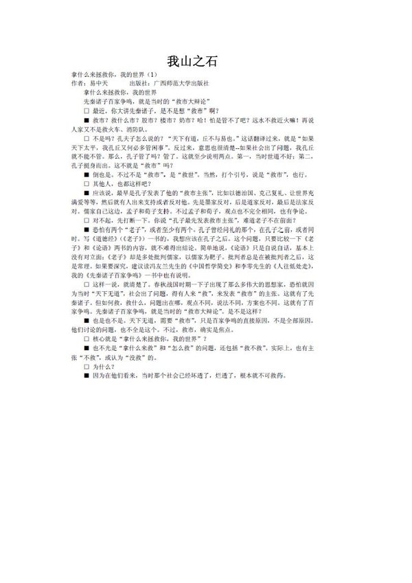 天下大乱,需要“救市”,先秦诸子百家争鸣,儒墨道法究竟孰是孰非?同一个世界,不同的梦想——克己复礼爱你有商量,国企改革爱你没商量,不折腾才有救,两面三刀横行霸道——这世界该交给谁?救世先救人,救人先救心,危机变金,我们该如何自处?易中天答问先秦诸子,大道至简,轻轻松松,畅快淋漓。