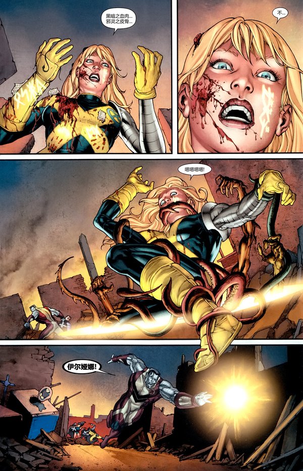 当她被链锁(Cable)从棱堡(Bastion)的博爱会(Purifiers)与险恶先生(Mister Sinister)的掠夺者(Marauders)等人手中成功保护了这个婴儿,