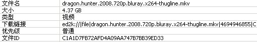 邪恶魔龙大举入侵,人类面临灭亡危机,古老预言的屠龙骑士,是否能带领眾人击败龙族?   自小在邪恶半兽人威胁下长大的达瑞尔和肯德两兄弟,是北方边境王国的幸存者,誓言复仇振兴王国。多年后,北方的邪恶龙族如野火般肆虐大陆,以猎杀人类为乐,两人意外得知自己是古老预言中屠龙猎人的后代,便决定前往传说中的屠龙猎人故乡,学习屠龙技巧。   冒险穿越大陆扺达屠龙猎人故乡的两人,却发现预言选择了没有太多实战经验的弟弟肯德作为屠龙猎人领袖,而非饶勇善战的哥哥达瑞尔,同时龙族军团大举入侵,战争一触即发,肯德能领导所有人击败龙族吗? 代码 Dragon.Hunter.2008.720p.BluRay.x264-THUGLiNE MOViE iNFO . theatre date.: N/A . release date.: 12th April 2010 ....... source.: BLuRay ........ audio.: dts @ 1536kbps .... reolution.: 720p (1280x544 @ 5036kbps> ...... runtime.: 90 mins ........ Genre.: Action |Adventure|Fantasy|Thriller ..... archives.: 94x50 mb .... subtitles.: none ........rating.: 4.2/10 (428 votes) + http://www.imdb.com/title/tt1290472/ +