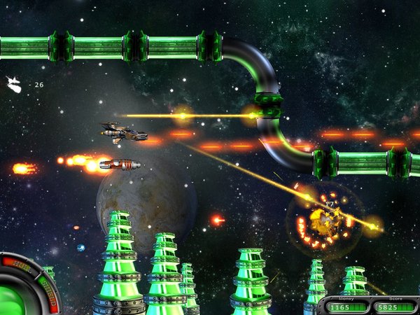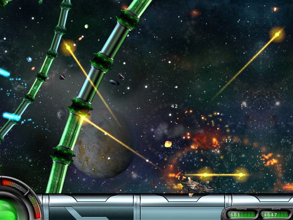 一款火爆的太空射击游戏,游戏方向为横向,类似于经典的沙罗曼蛇,游戏具有令人惊讶的特效和完美的高质量画面。你需要收集资源给你的飞船更多能量,同时深入到敌人的基地给他们致命打击,你要出入死亡大地,深海,太空等多个场景,打击敌人,保护群众。