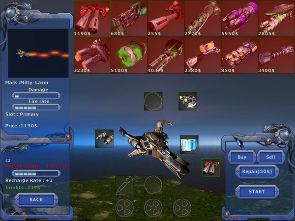 如果在横版的射击游戏种挑出一款精品,那非“火焰战机”莫属了,游戏不仅在画面和声音上表现异常出色,虽然在关卡中积累金钱以升级或购买新的附属装备在射击游戏中一般常见,但如此之多的附属装备,几乎和没有的。