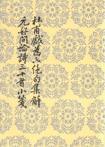 杜甫戏为六绝句集解和元好问论诗三十首小笺都是我的旧稿。杜甫戏为六绝句集解是以前发表过的,而现在加以增补充实。元好问论诗三十首小笺是集解式的旧稿,而现在加以整理改编的。旧稿原称是杜元王论诗绝句集解;另有王士禛一家,今以王诗与文学理论的关系较少,删去不录。杜甫的戏为六绝句,由于歧解纷纭,有待清理,所以採取集解形式。集解,虽似资料性的工作,但对学术研究也有很多方便:其一,把材料聚在一处,排队、归类,容易看出问题癥结所在,便于选择和评论;其二,有些解释,尽管理由不够充足,未能成立,但提出的问题,有时可能给人启发,产生另一种看法;其三,我所加的案语,可能有错误,或引述断章取义,或批评出于误解,保存原材料则便于覆案,易于纠正;其四,读书之时,偶有所见,很容易自矜自满,通过集解工作,知道有些语前人早己说过,那更可以虚心一些。