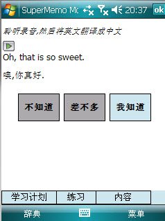 SuperMemo Mobile 3.3最大的优点在于它可以直接读取SuperMemoUX制作的课程,在音频和图片的支持上明显优于SuperMemo CE 4.5,另外,由在课程制作上也比SuperMemo CE 4.5更加方便.