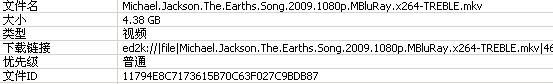 这是一部记录迈克尔·杰克逊全球影响的一部电影。迈克尔·杰克逊是一位当代英雄。该片使用这位名人推动正义的力量,这部独特的电影对此提供了独到的证据。这一纪录片里面有罕见的MJ秘辛和对杰克逊巡回世界反对种族主义、反战争、反压迫、和为受压迫儿童争取权利。杰克逊的一生和他的努力被重新回放和评价,这部纪录片见解独到,并且包含了“流行音乐之王”的出生5天到去世时的一些很少面世的照片。喜欢MJ的朋友们,请不要错过进一步了解他更鲜为人知的秘辛。 幕后制作 Earth's Song   这是流行之王迈克尔·杰克逊《HIStory》专辑中第三支进行世界范围发行(除美国本土)的单曲。在英国,该曲于95年12月初发行,首周即勇夺冠军位置并蝉联6周#1,成为英国单曲榜历史上最重要的圣诞档期冠军曲。这是自3年前Whitney Houston的“I Will Always Love You”(当时将“Heal the World”一直压在亚军位置)之后最成功的圣诞档期冠军单曲。“Earth Song”在单曲榜前75位停留了难以置信的17周(这是Michael在英国单曲榜上寿命第2长的单曲)并创下了1,038,821张单曲唱片的销售成绩,获白金认证。该曲由此成为Michael在英国单曲榜历史上成绩最辉煌的单曲。在最近的英国音乐排行榜50周年纪念的评比上,“Earth Song”成为英国历史上第69位畅销的单曲,这是MJ进入前100名的唯一单曲。单曲的成功帮助专辑在95年圣诞期间停留于前10位并进而突破了100 万套的销售大关。   欧洲方面,该曲也是大获全胜。它是欧洲单曲榜的#1(1周)并在榜上停留了24周(同“You Are Not Alone”)另外它也在德国获得了#1(5周),售出100万张单曲碟。在整个欧洲大陆,“Earth Song”几乎都是前5名的单曲。   “Earth Song”的处女秀是在95年德国的流行音乐电视节目“Wetten Das”。之后在该单曲在英国大获全胜后,Michael Jackson在96年的英国音乐奖的颁奖典礼上现场表演了该曲。同年的世界音乐颁奖典礼上也有该曲的现场表演。96年的英国音乐奖的颁奖典礼上 Michael Jackson表演“Earth Song”时出现了备受争议的一幕——某乐队成员Jarvis Cocker跳上舞台抗议MJ的救世主形象。尽管有此不快,这次英国音乐奖上的表演仍然成为了英国音乐奖的电视直播史上收视率最高的一次现场表演并将单曲从#38推升至#16。这支歌曲后来在“HIStory”文莱热身演出上以及所有的“HIStory”演唱会上都有表演。   正如大多最新的歌曲一样,它也没有被100%的现场演唱过。有人认为有的演出上唱得很快或在结尾处有区别,便是真唱,但实际上,那只是聪明的混音而已。比如在大多数的“Earth Song”表演中,包括1999年“More Can I Give”慈善演出上,那些“Ooo / Ahh”部分都显得与录音室版有所不同,或更现场一点。   尽管如此,还是没有敢质疑Michael在1996年世界音乐奖结幕时的现场表演,以及那些他唱出一些新加的歌词如“Tell me what about it!”的表演时刻。他也在不同的表演场合中加入少许不同的舞步。总之,由于它的力度、震撼性和情感,“Earth Song”是一支非常具有现场感染力的作品,从而成为了歌迷的最爱。 代码 RELEASE : Michael.Jackson.The.Earths.Song.2009.1080p.MBluRay.x264-TREBLE SOURCE : Music Bluray DATE : 08/04/2010 GENRE : Documentary RUNTIME : 52min AUDIO : [AC3] @ 192kbps VIDEO : [x264] @ 11847kbps RESOLUTION : [1920x1080] SUBS : [ ] English [ ] Dutch [ ] Finnish [ ] French [ ] Swedish [ ] Icelandic [ ] Spanish [ ] Norwegian [ ] Russian [ ] Croatian [ ] Romanian [ ] Turkish [ ] Bulgarian [ ] Danish [ ] English for Deaf [ ] Hungarian [ ] Serbian [ ] Slovenian [ ] Hebrew [ ] German [ ] Hindi [ ] Greek [ ] Polish [ ] Arabic COMMENT : njoy!