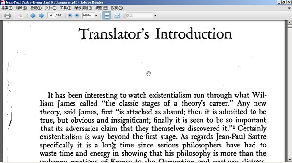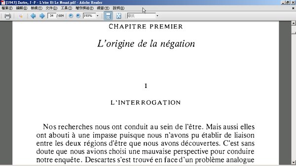 我们从「显现」出发,继而提出了两种类型的存在:自在与自为。这两种存在的深刻的含义是什么?为什么这两种存在都属於一般的存在?这种自身中包含著截然分立的存在领域的存在的意义是什么?如果唯心主义和实在论都无法解释那些事实上用来统一那些确实无法沟通的那些领域的关係,我们能给这个问题提出别的解决办法吗?现象的存在怎么能是超现象的呢?正是为了回答这些问题我写了本书。--尚-保罗.沙特