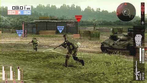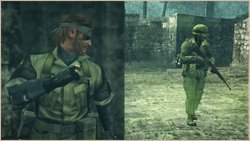 本次的试玩版拥有3个关卡,都拥有各自的主题任务。任务一主要内容是开场动画篇和教学关卡学习篇,参与人数为1名玩家;任务二是据点制压,主要是潜入关卡,再消灭所有敌人。可参与人数为1至2名玩家;任务三是战车对战,主要是消灭坦克,参与人数为2至4名玩家。 1.游戏基本操作: 剧情之后是教学部分,玩家需要控制大首领斯内克在海滩上熟悉一下游戏的基本操作。基本的按键模式分为“射击模式”和“动作模式”,将视角的四轴方向均设置为正常(不反转)。以下是操作一览表: 按键─────射击/动作模式: “↑键”:(动作)/(视角上移); “↓键”:(蹲、长按趴下)/(视角下移); “←键”:(装备品选择)/(视角左移); “→键”:(武器选择)/(视角右移); “L键”:(准备攻击)/(视角还原); “R键”:(攻击)/(准备攻击); “△键”:(视角上移)/(动作); “~键”:(视角下移)/(武器、装备选择); “□键”:(视角左移)/(攻击); “╳键”:(视角右移)/(蹲、长按趴下); “滑杆”:(移动)/(相同); “START键”:(显示菜单)/(相同); “SELECT键”:(自动准切换、合作通信)/(相同)。 2.操作细节: 游戏的基本操作模式和《合金装备4》相似,直接按“R键”为近身攻击或CQC───(近身格斗术),所以无法在不举枪的状态下直接使用武器。按住“L键”准备攻击后按“R键”才能使用武器,用调整视角的四个按键瞄准,方向键左右可以变更斯内克的身体的左右位置(在使用狙击枪时为变更放大倍数)。方向键下可以在站立和下蹲之间切换,按住下会趴在地上。 动作键的用途非常广,除了场景互动外,蹲下靠近晕厥的士兵可以拍打他们的身体掉出道具;装备一部分装备品时为使用它们;举枪动作中为上弹。打开自动锁定(Auto Aim)的时候,按住准备攻击键不会出现准星,斯内克会自动锁定前方视野范围内的敌人,这时候射击就可以攻击到他们,但是准确度会稍低,大范围转动视角就会自动变更锁定的敌人,试玩版被锁定的角色没有任何标志,希望在正式版中能有所改进。 3.近身攻击: 不装备武器的近身攻击就是斯内克标志性的拳打脚踢,每一下都有耐力伤害。如果装备了武器,根据武器持法不同,会发动不同的近身攻击,比如拿着冲锋枪就是给敌人一枪托。推滑杆并按“R键”做出翻滚动作,除了可以躲避敌人的攻击之外,还带有攻击判定,虽然伤害很低,但是可以让敌人产生硬直。 4. CQC(近身格斗术): CQC───(近身格斗术)是从《合金装备3》开始加入到游戏中的,试玩版中的CQC动作不多,靠近敌人后如果是空手或者装备着可以发动CQC的武器(单手手枪之类),屏幕下方就会显示按“R键”发动CQC的提示图标,这时候不推滑汗按住“R键”就可以擒住敌人的脖子,持续按住“R键”就会慢慢耗光敌人的耐力,让其眩晕,擒住敌人时推滑杆就会将他向相应的方向摔投出去。也可以在按“R键”的同时按住滑杆,这样就是快速摔投,如果是敌人未发现斯内克之前的背后摔投,可以一击让敌人眩晕,如果斯内克已经被发现的话,一般需要两次摔投才能让其进入眩晕。如果周围近距离内有多个敌人,快速摔投可以连续使用,可顺次将所有敌人放倒。潜行慢慢接近敌人后,装备武器在其背后按“L键”举枪,斯内克会说:“别动!”这时候敌人就会乖乖地束手就擒趴在地上了。而缴械投降的敌人,可以拍出4个道具,然后用气球回收。 5.关于作战和四名登场角色: 试玩版的内容非常充实,第一个任务开始前欣赏一段精彩的CG动画后可以通过教学关卡学习本作的基础操作,从3个各不相同的任务中,玩家可以实际体验游戏的系统。此次试玩版提供了4个不同装备的斯内克供玩家选择,分别是:战斗装(Battle Dress)有防御力高、隐蔽度低,适合通常战斗;潜行装(Sneaking Suit)隐蔽度高,武器携带量少,适合潜入任务;丛林装(Jungle Fatigues)各项能力均衡,拥有狙击枪,适合各种任务;裸战装(Naked)防御力和隐藏度都比较低,武器携带量大、移动速度快,典型的战士。 6.道具选择与前作相似: 按住道具选择键后打开菜单,这时候和《怪物猎人》中选择道具的方法相同,“□键”和“~键”左右移动光标,停在道具上松开道具选择键就装备了该道具,光标悬停时还可按“R键”直接使用或按“L键”丢出到场景中(部分道具适用)。游戏是实时进行的,打开任何菜单都无法暂停游戏,切换道具的时候人物无法移动。游戏还提供了轻按一下按键快速切换道具的设定。 7.伤害表示: 试玩版提供了一些武器,包括大家熟悉的MK22、震撼弹、RPG7等,瞄准时的准星各不相同。装备武器后,右侧的武器栏内标有CQC的为可使用CQC,标有“ZZZ”的代表是麻醉性武器,弹夹内的弹药由小横线条表示,弹药数量左侧的长条是消音器的耐久度。 8.角色血槽表示: 游戏中的人物都有血槽和耐力槽两部分,敌人的血减完就会死亡,耐力减完就会进入眩晕状态。攻击命中敌人时,红色圈代表伤血,蓝色圈代表消耗敌人耐力,不同的武器攻击敌人不同的部位都有不同的伤害。命中没有头盔保护的敌人的头部拥有2万以上的麻醉值,能让其直接进入睡眠,如果不是头部,麻醉伤害大概只有数百到上千,这之后会引起敌人的注意,他们体内的麻醉值会慢慢增长,一段时间后会倒地睡着,麻醉值慢慢增长的期间玩家也可以继续攻击他们以缩短进入睡眠的时间。 9.装备物品、武器和战术: 丰富的道具一直是《合金装备》的特色,试玩中就提供了非常多的装备物