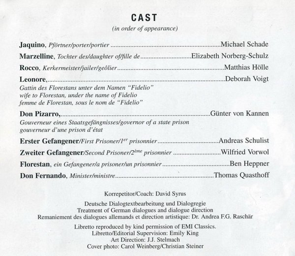 演唱:Michael Schade, Elizabeth Norberg-Schulz, Matthias Hölle, Deborah Voigt, Günter von Kannen, Andreas Schulist, Wilfried Vorwol, Ben Heppner, Thomas Quasthoff