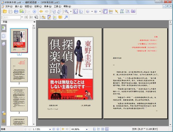 因为不通日语,所以先前我还以为这四篇是单行本,因为找遍网上都搜索不到ISBN,然后又以为是冒充的伪作,后来更仔细搜索的时候才找到一个目录,说明了这是包含在《侦探俱乐部》里的。
