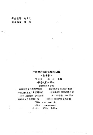 本书由地方志中民俗资料汇编而成。本卷所收为东北的辽宁省、吉林省、黑龙江省部分。这些资料对了解和研究东北各地方、各民族的风俗和进行有关的文学、社会学、历史学、地理学等学科的研究,会有不小帮助,对于编纂新的地方志以及促进移风易俗,研讨这方面的精神文明建设问题,也有参考价值。