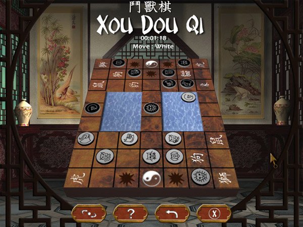 【游戏简介】 斗兽棋是一款古老而传统的中国游戏,是象、狮、虎、豹、狗、狼、猫、鼠八种有趣的动物互相牵制、互助战斗的棋类比赛。这款电脑游戏再次把它完美的展现在了我们的面前。游戏的规则简单但策略性很强,三个不同的难度水平供你来选择,还可以通过联网进行对战。 【游戏评测】 画面: 游戏使用了立体拟真风格的棋子,画面采用3D的棋盘呈现。你可以在比赛中变换4种不同的视角。浓郁的中国风格也会让玩家倍感亲切。 声音: 游戏并没有设置更多的背景音乐,不过模仿不同动物叫声和棋子移动的真实声效却可以让玩家感受到电脑版斗售棋的特殊乐趣。 上手度: 斗兽棋是中国一种棋类游戏,双方有八只棋子,依大小顺序为象、狮、虎、豹、狗、狼、猫、鼠。较大的可吃较小的,同类可以互吃,游戏的规则十分简单。 创意: 游戏的古典风格鲜明,画面制作精美,而斗兽棋的奇妙策略也很好的体现在了电脑的AI之中,让斗兽棋这个古老的棋类游戏焕发了崭新的魅力。 可玩性: 这是一款玩法简单,趣味浓厚,变化复杂多样,符合各个年龄阶段的人的益智游戏,喜欢棋类的朋友也可以找到一个值得挑战的电脑对手也可以联机进行对战。 【游戏裁图】