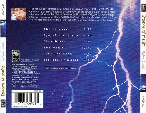 Medwyn Goodall 在这张2000年发表的《Essence Of Magic 魔力之源/魔法要素》中充分运用了他的独特的音乐创作手法,在原有音乐元素的基础上,运用鼓、电子器乐来营造一份迷幻的境界,而多产的作者在此类素材和概念上制作了许多专辑。此专辑同样具有独有的特色。   《Essence Of Magic 魔力之源/魔法要素》拥有许多人惯用的自然声音,南美节奏器乐,新世纪的电子键盘乐器,用这些许多作者都使用的方法和形式,融合起来,在 Medwyn Goodall 的编排下,给我们的感觉却是那么的舒服,无论是平缓的迷幻,或者是急促的激荡,都可以感受到一种让人神迷的氛围。虽然只有6首曲子,但是每一首都可以是一个完整的章节。