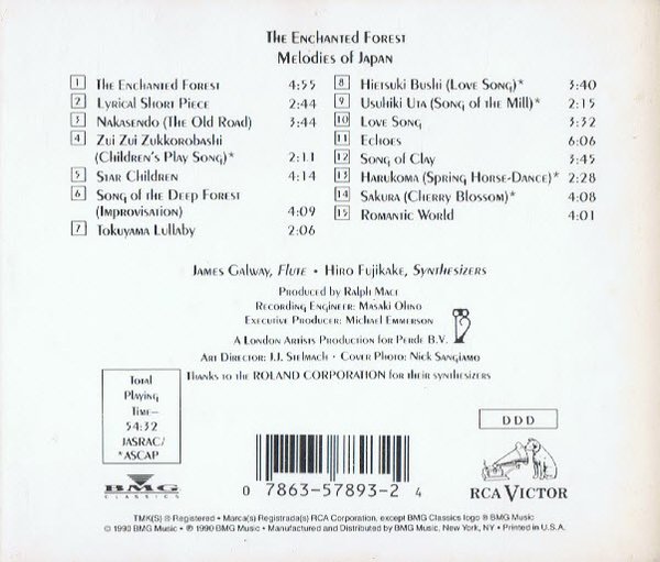 In Mr. Fujikake we find not only a composer whose melodies have that rare quality that suggests they may live forever - like the accompanying traditional Japanese melodies - but also a master of electronic keyboard instruments producing a spectrum of contemporary sound colorings and rhythms that blend into a new and exciting accompaniment for the unique timbre and phrasing of James Galway’s golden flute.