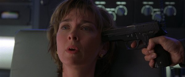 本片套路墨守陈规却能成功,关键在于它细节非常丰富。我们看到总统打手机时接线员态度恶劣,手机的电池很快没电了,这些都是生活中常见的事,但看到堂堂总统也有如此遭遇,会引起百姓的共鸣。哈里森·福特扮演的动作英雄有别于史泰龙或施瓦辛格的角色,他不但能斗勇,还能斗智。当他说话时,没有那种漫画式或戏曲化的居高临下和威风凛凛,他的权威是从骨子里渗出来的。盖瑞·欧得曼扮演的恐怖分子头目倒有几分夸张,他一边搜寻总统,一边发表爱国(俄国)高论,那神情让你捉摸不透他到底信不信自己的话,抑或只是用来吓唬别人的。