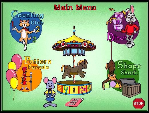 Let’s Start Learning! is the first in the Reader Rabbit Series and is the entry point to The Learning Company’s system of learning products. This product brings children to the gates of the Learning Kingdom, where they may continue their quest for learning and bring the wonders of reading, writing, and thinking to life. After Let’s Start Learning!, children may enjoy any one of the following interactive learning adventures! 《让我们开始学习》是 learning company公司开发的读者兔子系列中的第一部。它带领孩子进入学习的王国。使学习变的有趣好玩。 个人以为, 这部适合学前的孩子使用。丰富的内容,风趣的学习方式,会让孩子们玩的不亦乐乎,同时孩子们会掌握数数,字母,形状,颜色,以及常用食物和物品的英文说法, 还会学会如何排列,如何分类等基本技巧。 We are Mat the Mouse and Reader Rabbit It is so nice to be with you. Come and see our special playworld. There is so much for us to do! Numbers, letters, shapes, and patterns These are things that you'll explore. Sorting, matching, counting, comparing Let's start learning these and more! You can join the Counting Club. The forest friends hide all about. Ali the Counting Cat will help you Find them all and count them out! In the wacky ABC Diner, Ed the Dog's the special cook. Learn your letters, make some snacks Come on in and take a look! When you want to celebrate, March off to the Pattern Parade. Ben the Ant, who leads the band, Will check the patterns that you've made. Deep inside the dark, green jungle The Shape Shack shakes and sways all day. Mit the Monkey helps you learn To sort the toys and put them away! Play the games, collect the keys. Find your pony on the Carousel. All these things are so much fun And you can learn to do them well. Are you ready? Come along! Now it's time for us to play. Dance a dance and sing a song. Let's start learning! Hip HOORAY! 本部包括四个部分: Counting Club (数数俱乐部); ABC Diner (ABC餐厅); Shape Shack (形状小屋); Pattern Parade (式样检阅)。Pattern个人觉得很难找到合适的中文来翻译。请翻译高手指点。 数数俱乐部:森林朋友藏在树洞里,在数数猫的帮助下,找到它们并数出它们的数量。 ABC餐厅:古怪的ABC餐厅,ED狗厨师能做出各种好玩的小吃,进来看看吧! 形状小屋:在黑暗的绿色丛林里,形状小屋整天摇摆不停,MIT猴子将会帮你如何归类玩具。 Pattern 检阅: 当你要庆祝一下的时候,带领乐队蚂蚁Ben会检阅你制作出了何种Pattern。 玩游戏,收集钥匙,到喧闹的酒会上找到你的小马,你会发现真是太好玩了! 这是个镜像文件,可以用虚拟光驱软件或者刻盘来玩。 Mcafee检测,无毒。 本资料版权归原作者及原开发商所有,如果你喜欢,请购买正版软件。 下午6点后供源,坚持一周到一月。