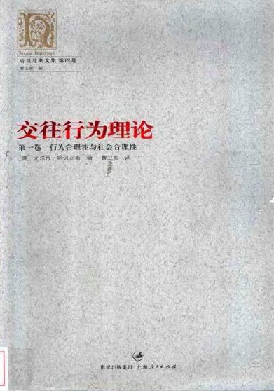 《交往行为理论》这部著作是涉及面相当广泛。这部著作中,马克斯·韦伯(Max Weber)占据了一个更为突出的位置,并且这些诠释的素材更加集中在哈贝马斯自己思想的观念图式上。哈贝马斯在这本书的开篇就声称,交往行为理论既非一种元理论,也非一种借助其它手段进行的认识论的继续。交往行为理论的分析让我们联接了与社会分析相关的三种理性:一个是涉及解释学和英美分析哲学中作为论争的理性,特别是关系到相对主义的问题。如果不同文化或生活方式有他们自身内在的合理性标准,那么在何种意义上才可能按照普遍性的标准比较他们并使其服从于批评?另一个是涉及到行为理性,即如何领会人的行为中有特殊意义的性质?这触及到理解的意义问题,还触及到了当行为者本人已经为他们的行为设定了理由时,社会科学在主张更好的解释时其自身的任务问题。最后一个是是关于理性的社会扩张问题,即作为现代西方社会特有的那种合理化问题。这本书的大部分努力就是致力于此。哈贝马斯断言:理性更多地是与运用知识的方式联系在一起,而较少地与知识有关。如果我们认为在一些情境中谈论某事是合理的,那么,我们就会明白这要么是指人们表达的认识,要么是指包含认识的符号表达形式。我们说某个人理性地行动,或者说某种陈述是合理的,实际上就是说这个行为或陈述可以被有关的某些人批驳或辩护,而这恰恰就是他们为了能够证明自己是正当的或有根有据的。我们不能像经验主义者那样,限制理性行为的范围和对客观世界的认识。我们必须以“交往合理性“的概念来弥补“工具认知理性“的不足。正如哈贝马斯自己所说的,合理性意味着交往,因为只有符合与至少另一个人达成相互理解的必要条件时,某事才是合理的。