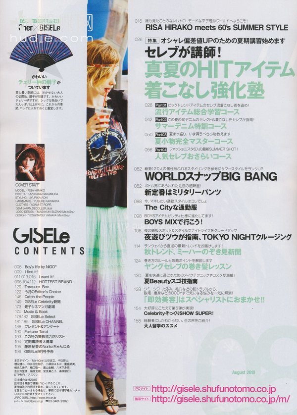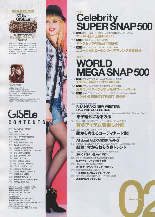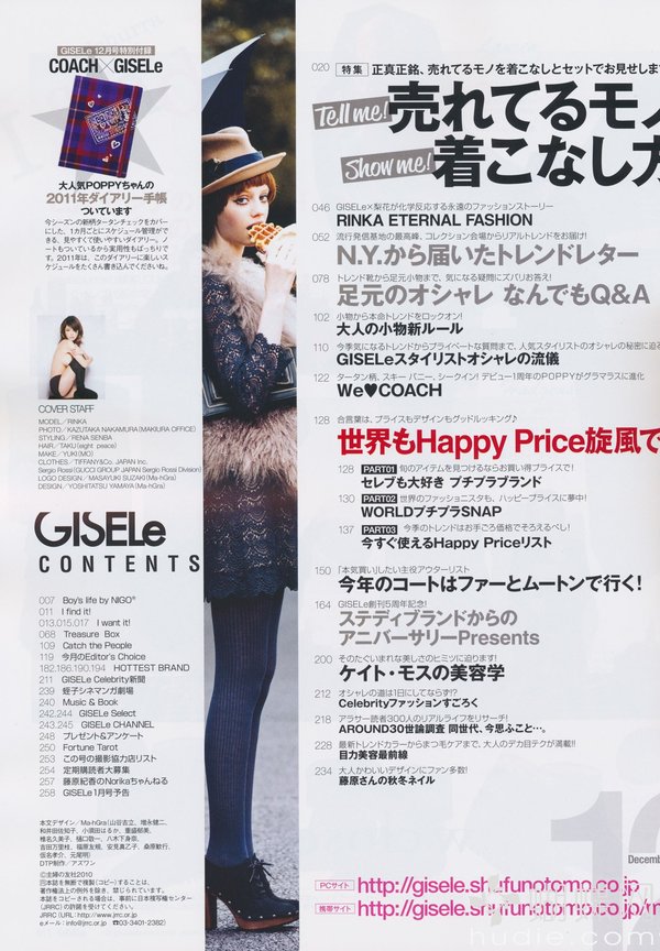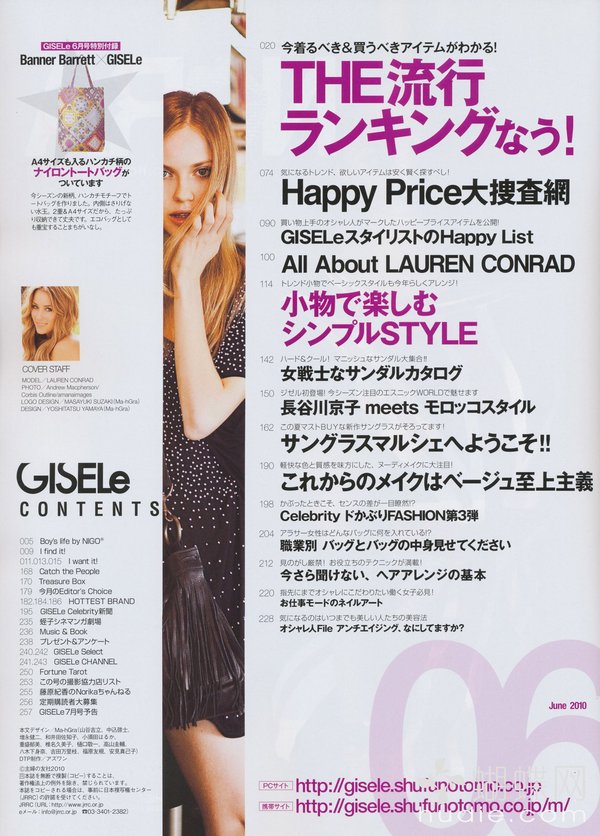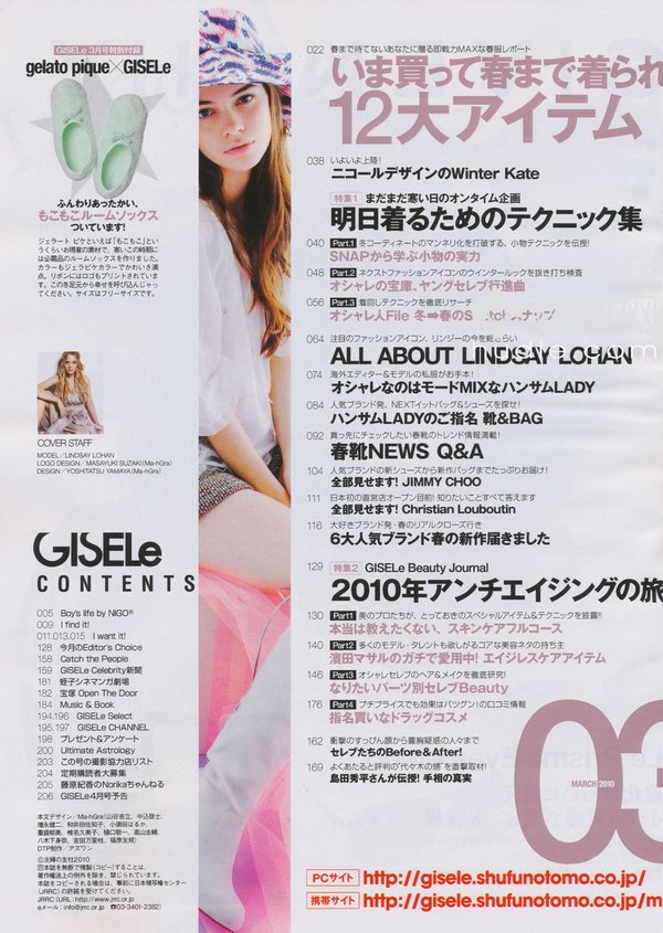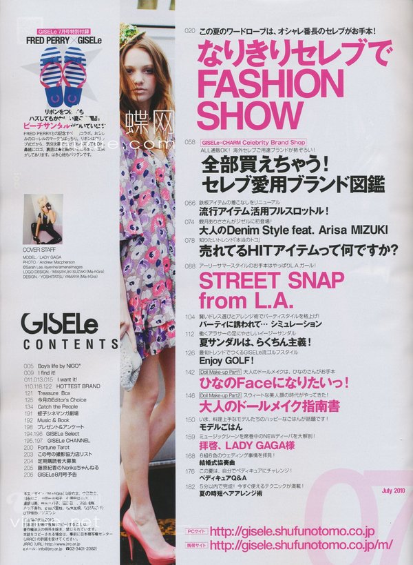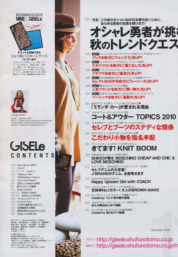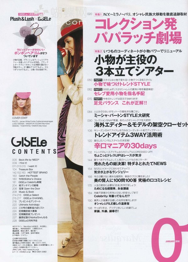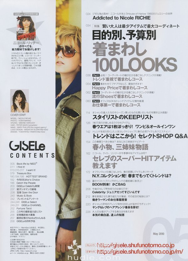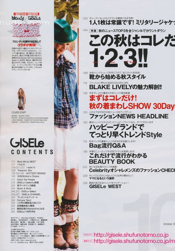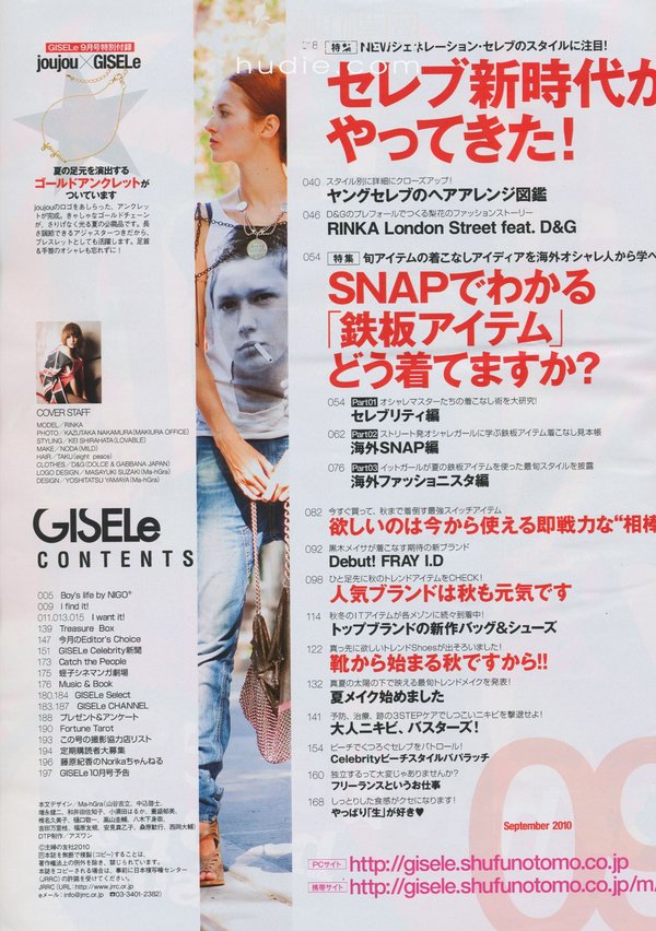 《gisele》欧美风女性时尚杂志。提供重视自我感觉,充满自信,喜欢追求充满自由的生活,不随波逐流的新世代,一个展现由内而外,自我流的时尚风格,用大版面的图片写真,呈现强调形象式的概念风尚,而非制式工整的搭配工具书,大量介绍海外时尚的品牌,提供一个不同视野的角度,展现不同文化的流行风格,除了服装之外,包括发型、彩妆的资讯。