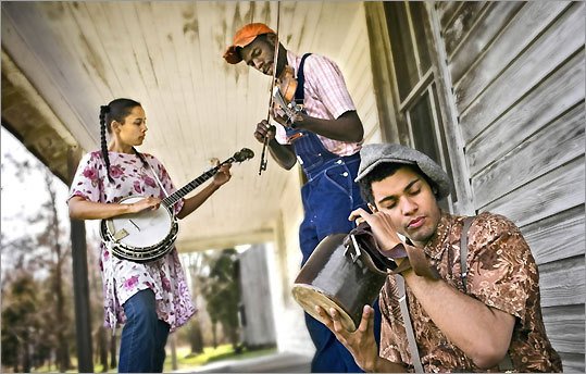 The Carolina Chocolate Drops are an old-time string band from Durham, North Carolina, United States. Formed in November 2005 following the members' attendance at the Black Banjo Gathering in Boone, North Carolina, the group is one of the few remaining African American string bands. The group has three members: Rhiannon Giddens, Dom Flemons, and Justin Robinson, who were all in their twenties when the group formed.[1] All of the musicians sing, and trade instruments including banjo, fiddle, guitar, harmonica, snare drum, bones, jug, and kazoo. The group learned much of their repertoire, which is based on the traditional music of the Piedmont region of North and South Carolina,[2] from the eminent African American old-time fiddler Joe Thompson, although they also perform old-time versions of some modern songs such as Blu Cantrell's R&B hit "Hit 'em Up Style (Oops!)."