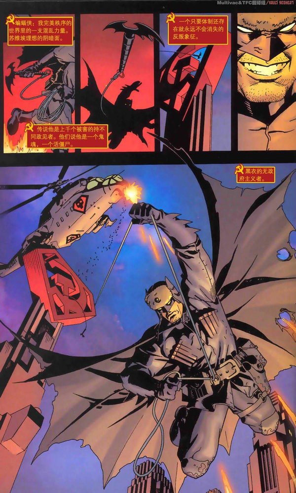 这部漫画从1995年就开始酝酿,然而等到2003年方才推出。此时小布什已经就911事件借题发挥,调整对内对外的政策,从而引起广泛争议。漫画虽不是寓言(尽管其中明确称呼蝙蝠侠为恐怖分子),但它对于国家安全与自由人权的思考,亦引发读者的反省。也许,对于一个存在良知与理性的国度,这永远是个值得思索的主题。