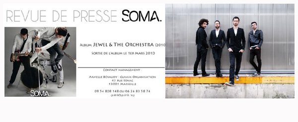 Lionnel,Seb,Tom B.和Tom F.四人在中学时期由于共同爱好摇滚乐而组建成立了Soma乐队。乐队在法国及其它地区历经长达10多年的演艺生涯后,终于在今年发行了他们的首张专辑,专辑音乐融合了the Hives和the Killers的音乐风格。当专辑在洛杉矶由他们的偶像Dave Sardy, Oasis的制作人, Jet以及the Dandy Warhols共同亲历打造并录制完成后,他们的梦想最终得以实现。Soma也是美国人愿意与之合作的第一支法国乐队。