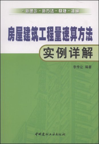 :   《房屋建筑工程量速算方法实例详解》可供从事建筑设计、施工、监理、咨询等单位的概预算人员,以及工程造价管理和审计人员使用,也可作为大专院校相关专业的教学参考用书。由于作者水平有限,书中难免存在不足之处,希望广大同仁批评指正。