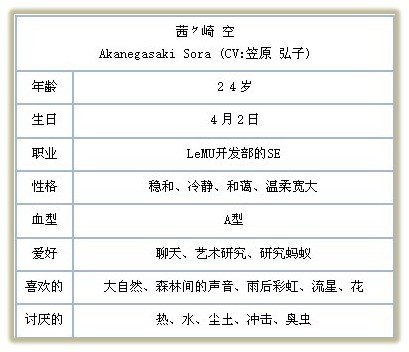 ★茜崎 空(CV:笠原弘子)