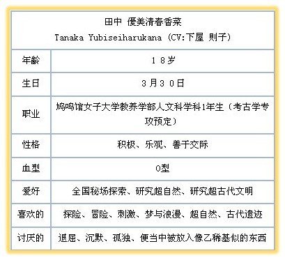 ★田中 优美清春香菜(CV:下屋则子)