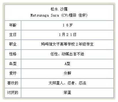 ★松永 沙罗(CV:植田佳奈)