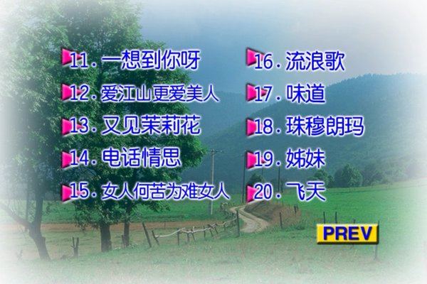 本专辑前20首是原DVD的画面和音频,后5首是根据VCD版本的视频+高质量的APE音频制作成的,画面统一成跟前20首的一样大小,主要是弥补原DVD歌曲不全的遗憾,希望朋友们能喜欢。