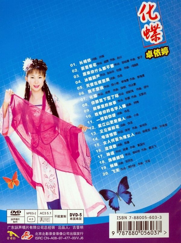 专辑取名《化蝶》,是希望卓依婷能在辛苦的蜕变后幻化成美丽的彩蝶,这张专辑也让她的演艺事业渐入隹境,美丽的彩蝶在飞舞,让我们看她的精湛的演出吧!