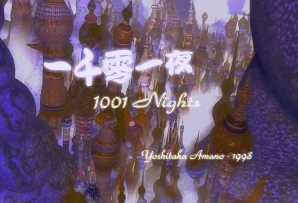 1998年3月在洛杉矶上映的《Filmharmonic—1001 Night》,该片的放映的时候正是美国受FF系列所掀起“天野热”的时段,一如之前说提到的《天野喜孝—华丽之幻想美的世界》映画作品,《Filmharmonic—1001 Night》这部作品也是由天野的图稿影像为主体,配合古典音乐的搭配而成,其中另特别有以天野的风格而制作的3D电脑绘图影像部分,这是前作映画《天野喜孝—华丽之幻想美的世界》所没有的。