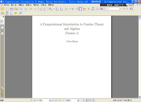 计算数论与代数导论 A Computational Introduction To Number Theory And Algebra Victor Sho