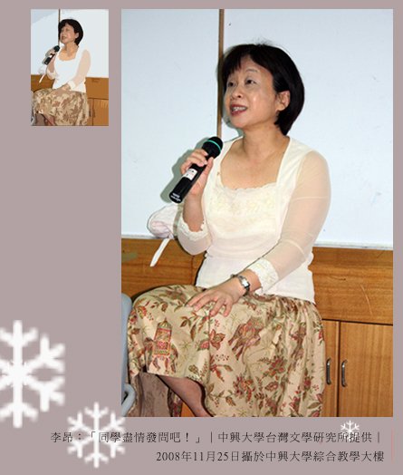 李昂(1952—)台湾当代著名小说家,原名施叔端,台湾彰化鹿港镇人,台湾著名现代派作家施叔青之妹。台湾中国文化学院哲学系毕业,美国奥立冈大学戏剧硕士,后任教。 17岁发表处女作《花季》,涉及性意识性心理的禁区,从此其作品多以两性关系为题材,深入探讨妇女命运、人性的解放及其与社会文化道德的关系等问题。 著有小说集《混声合唱》、《鹿港故事》、《人世间》、《她们的眼泪》、《爱情试验》,中篇小说《杀夫》(1983年,成名作,自此李作成为畅销书的一部分)、《暗夜》,长篇小说《迷园》,专栏集《外遇》、《女性的意见》等。 李昂的求学时期恰是50年代末60年代初的台湾西化时期,因此其作品中有强烈的西方现代意识,被视为台湾“新世代”代表作家。 买鞋子哪个网站好?首选中国最大的正品鞋网商城(http://shoes.weixiaodian.com/)、 网上正品鞋城(http://u.weixiaodian.com/shoe/)。微店网页版请从http://121.weixiaodian.com登录:手把手教你如何免费申请开通微店、怎样经营微店及如何用微店赚钱。看笑话,上