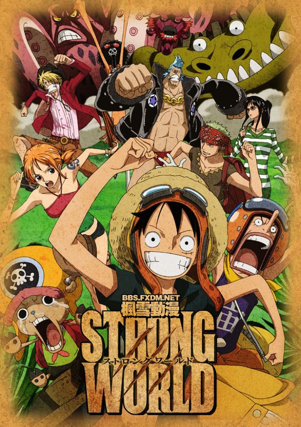 【资源格式】 简体、繁体内嵌 RMVB 【内容介绍】   强者世界本故事为原作者尾田荣一郎亲自上阵,故事为全新的冒险,路飞等人会穿西服哦~~超帅!!    正在向着伟大的航路进发的草帽海贼团,这一天突然听说路飞的故乡东海遭受危机的消息。正当路飞打算中断旅程返回东海的时候,有着恶魔果实能力的海贼“金狮子史基”乘着飞空海贼船出现在众人面前,并强行带走了精通航海术的娜美。   与金狮子正面火拼上的草帽海贼团,赫然发现这个强大得难以想象的对手,竟然正是曾让海军蒙羞的,从大监狱越狱成功的传说中的海贼…… 【STAFF】 【原作∕制作总指挥】尾田荣一郎    【监督】境宗久    【脚本】上坂浩彦    【作画监督】佐藤雅将    【美术监督】胁威志    【动画制作】东映Animation    【票房】 47亿日元(约合人民币3.56亿) 【CAST】 【路飞】田中真弓    【娜美】冈村明美    【索隆】中井和哉    【乌索普】山口胜平    【香吉】平田广明    【乔巴】大谷育江    【罗宾】山口由里子    【福兰奇】矢尾一树    【布鲁克】长岛雄一    【金狮子·史基】竹中直人    【官方网站】 http://www.onepiece-movie.com/