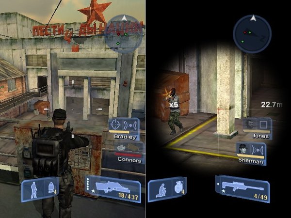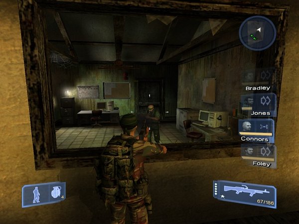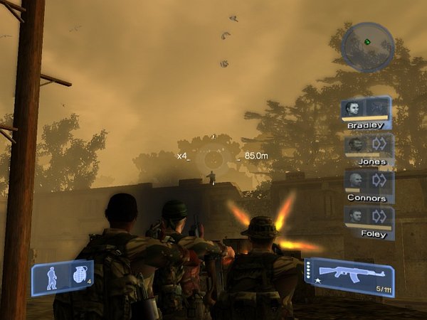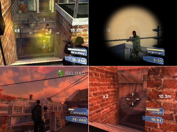 你想要带领队员接近某地,首先自己要保证能够通过才行。在你的小组成员中,每个人使用的武器都不同。有的使用的是狙击枪,有的使用的是机关枪,还有一些人习惯于使用炸药,不管怎样,每一关中都要保持它们全活着。当敌人身处险境时,小组成员会使用大量喷雾功能,这样可以让对方的反应变的迟钝。这个时候就可以拦截敌人进行射击,不过更多的时候会遭遇很多数量敌人。向敌人射击时,他们会寻找掩体躲避。本作取消了自动瞄准系统,添加了“稍后执行”功能,玩家也可以预先设定一个命令,这样在紧急时刻就可以直接按键来使用。另一方面,当你意识到要射击敌人的时候,就会投掷手榴弹进行轰炸。这样做之后,就会打乱对方的作战策略。
