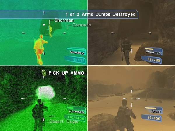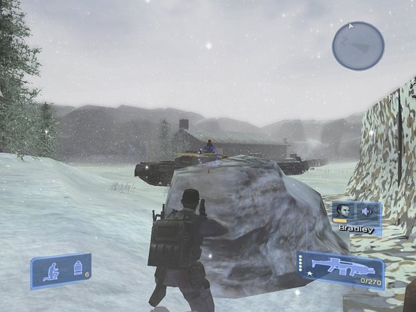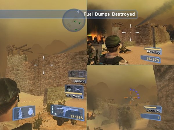 环境设计在视觉上感觉非常舒适,这里将会看到多种不同类型的作战画面。有喧闹的城市,杂草丛林,野外要塞和雪天荒地等不同类型。团队控制相当重要,《冲突:全球风暴》和《H&D》一样将会出现遭遇战。很多情况下,小组成员会启动枪支,浪费大量火药。很多团体活动是自动产生的,这样领导者作战就比较轻松。