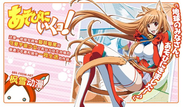 2003年10月由神野オキナ连载于MEDIA FACTORY·MF文库的轻小说「玩伴猫耳娘(あそびにいくヨ!)」,在继2006年7月推出PS2游戏之后,相继进入了漫画化、Drama CD的阶段,这是一部描写拥有猫耳猫尾的可爱宇宙少女艾莉丝与住在冲绳的普通少年嘉和骑央一同生活的作品。