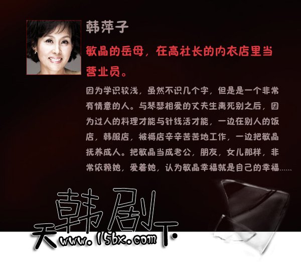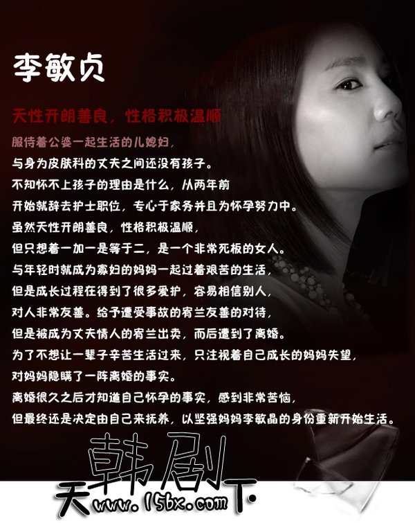 后来金智浩发表了自己在剧中饰演经历丈夫外遇痛苦的李敏晶的感受。她说:“我结婚并抚养孩子后发现这个角色好像更让我心痛”,“我一边读剧本一边哭,也非常生气”。