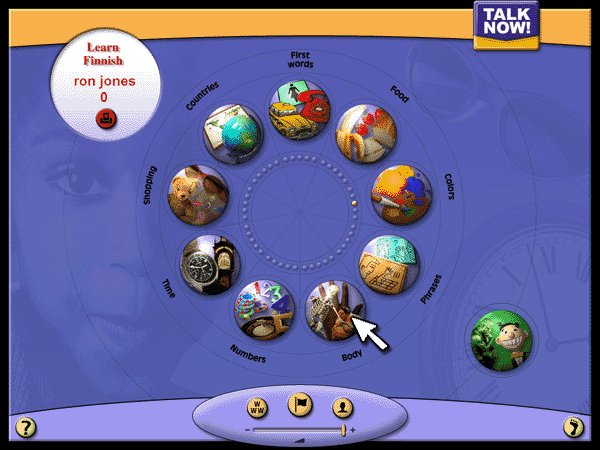 软件一共有9个主题:食品,颜色,短语,身体,数字,时间,购物和部分国家、地区。每个主题包含听力训练,一个简单的游戏,一个困难的游戏,可打印的字典以及创纪录的机会,系统将对比你的发音,你将在整个过程中发现其母语的使用方法。帮助的目标语言增加到102种。本光盘自动本地化并使用操作系统的界面语言。也可点击第一个屏幕上的国旗图案更改帮助语言。