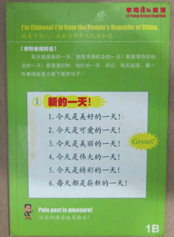 话说回来,如果在初学外语的时候没有遵循人类学习语言的天性,没有把“说”练好,那么李阳的方法就很适合,适合把你应该做而没做好的事重新补回来,哪怕你是高中、大学还是研究生。