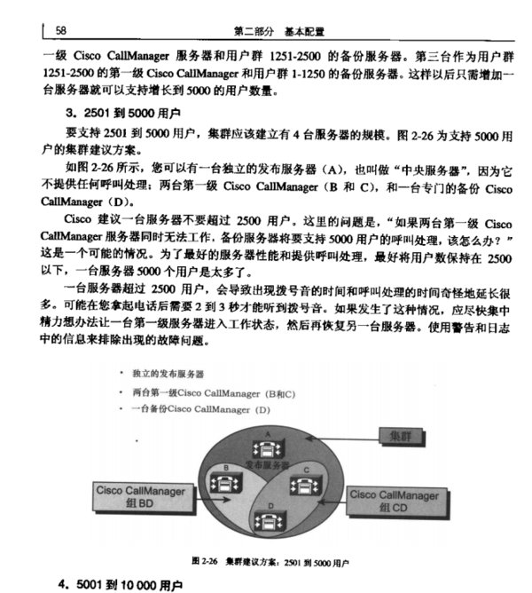 . 第8章:安装、备份和升级——除非安装操作得不正确,否则安装一台Cisco CallManager服务器不会影响Cisco CallManager的呼叫处理、注册及其他特性。合适的设计对搭建一个良好的Cisco CallManager集群是很关键的。本章着重介绍Cisco CallManager服务器的安装、安装后期任务和Cisco CallManager集群的升级过程。