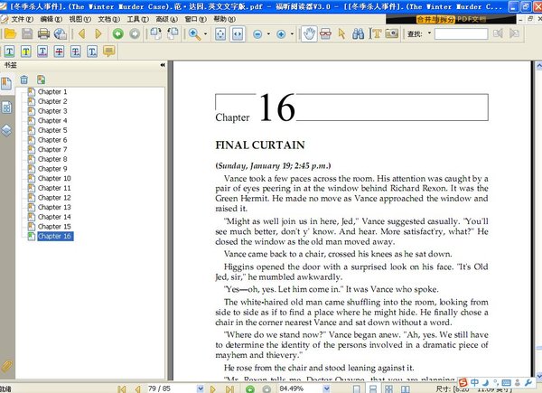《冬季杀人事件》是范达因未完成的最后遗作,整个故事大纲都已经架构完整,只欠缺人物的对话和气氛的营造而已,因此这本书的节奏显得有些快速。