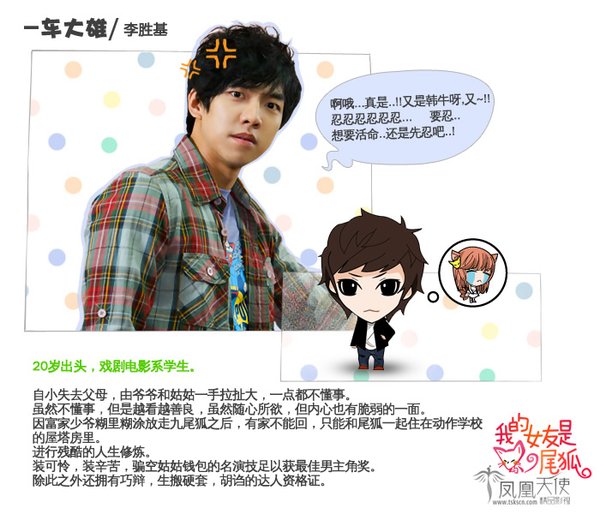 【中文剧名】我的女友是九尾狐 【韩文剧名】자이언트 【电视台】韩国SBS 【首 播】2010年08月11日 【回 数】预计20集 【导 演】付成哲 (明星的恋人) 【编 剧】(洪氏姐妹)홍정은, 홍미란 (豪杰春香/快刀洪吉童/是美男啊) 【演 员】李胜基 申敏儿 孝敏 【格 式】RMVB 【语 言】朝鲜语 【字 幕】中文字幕 【制作出品】:凤凰天使TSKS韩剧社 【